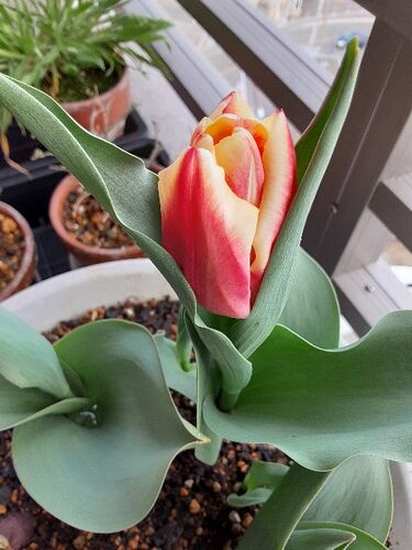 3号:あっという間に花が咲きました。 2号の蕾も膨らんでいます。 一番最初に芽が出た1号の成長が遅れています・・・。 3号 210327 咲いた! 210327